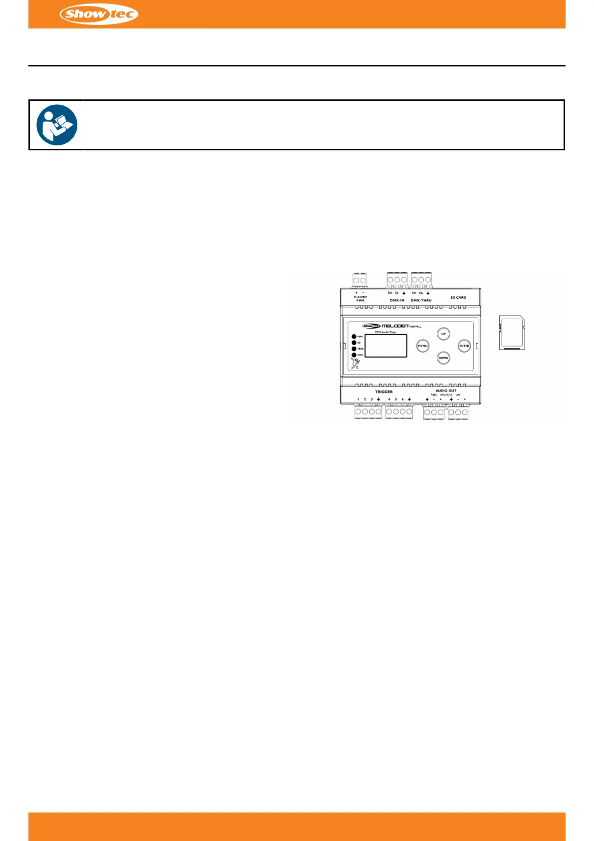 This device is intended for professional use as a DMX controllable WAV media player. It can be installed only