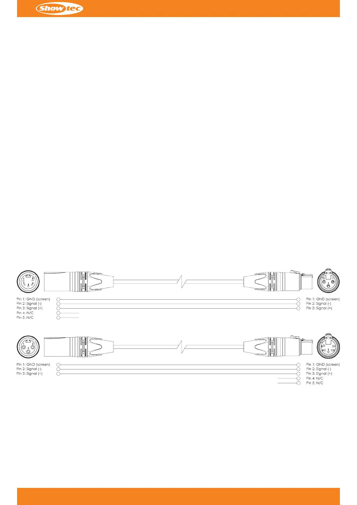 When you make your own DMX cables, make sure that you connect the pins and wires correctly as shown in