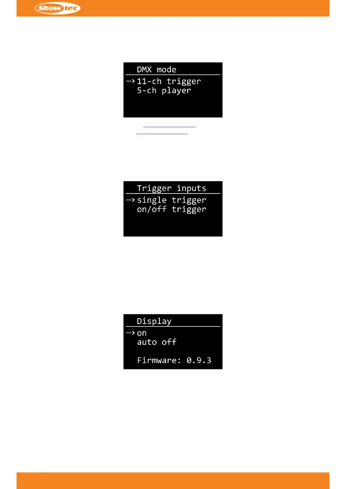 • 11-ch trigger (11 DMX channels) (see 6.2.1. Trigger Mode on page 17)•