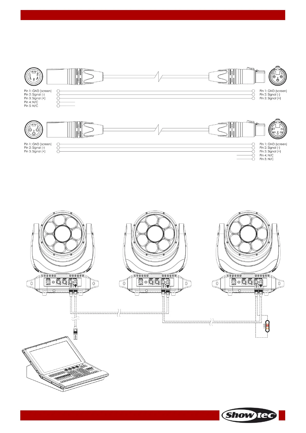 DMX cable. Connect the first unit’s "out" socket with the second unit's "in" socket, using a DMX