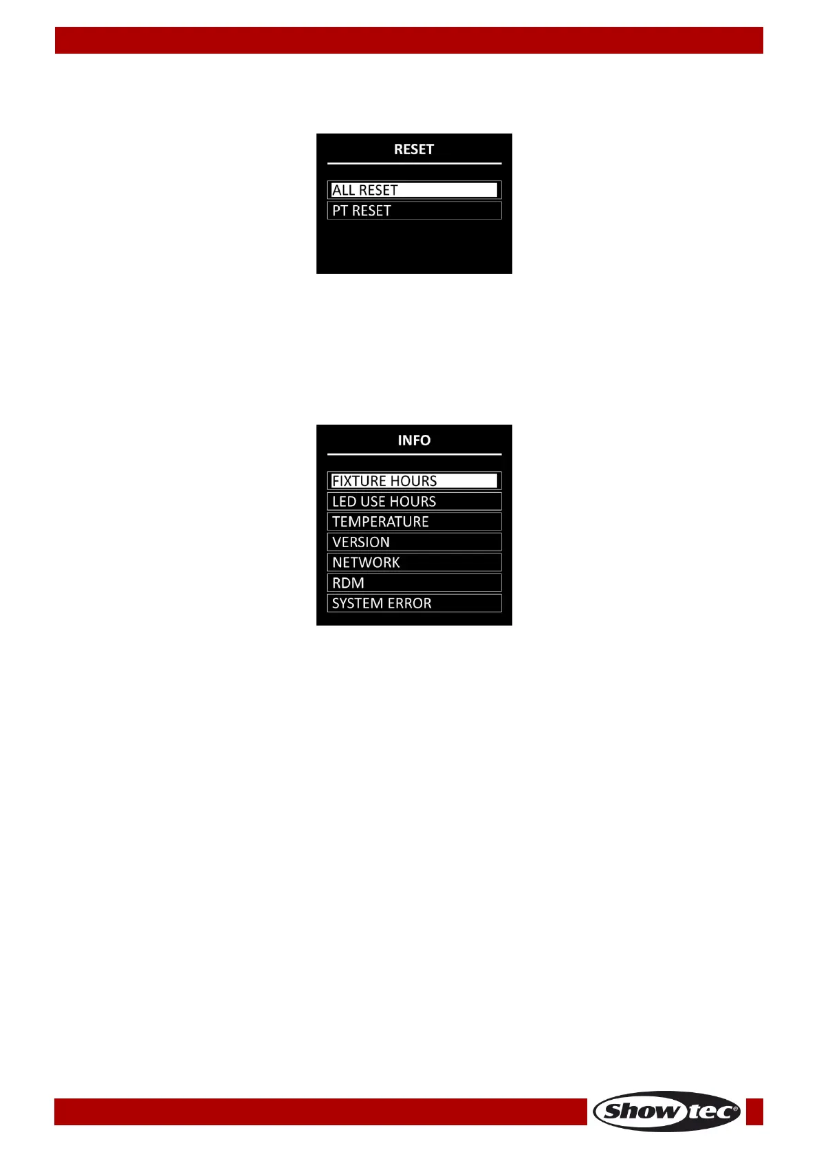 ● TEMPERATURE: Provides information about the temperature of the LEDs and the display.