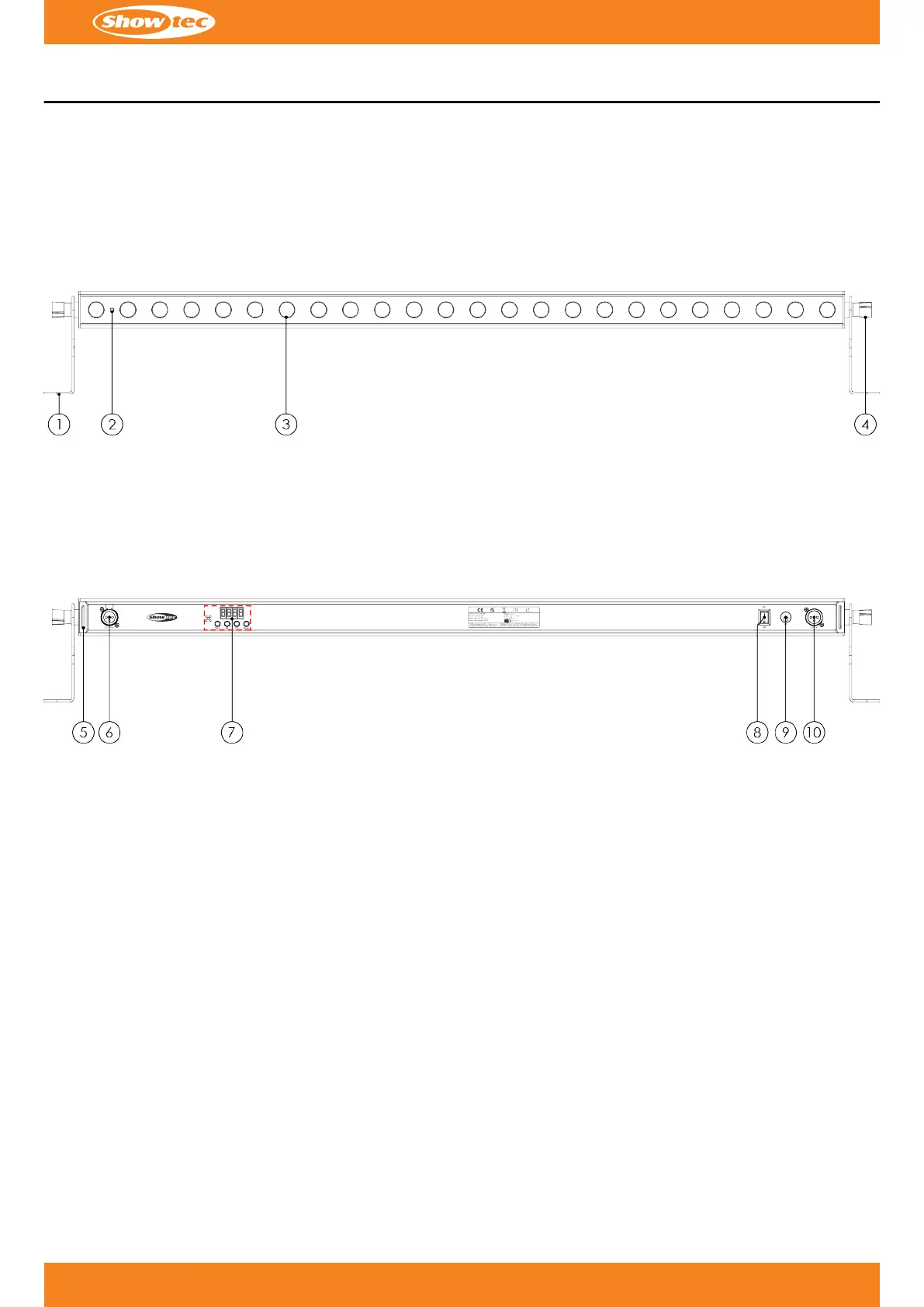 at maximum output. The LEDs can be controlled in up to 8 sections and 38 DMX channels. The device can also