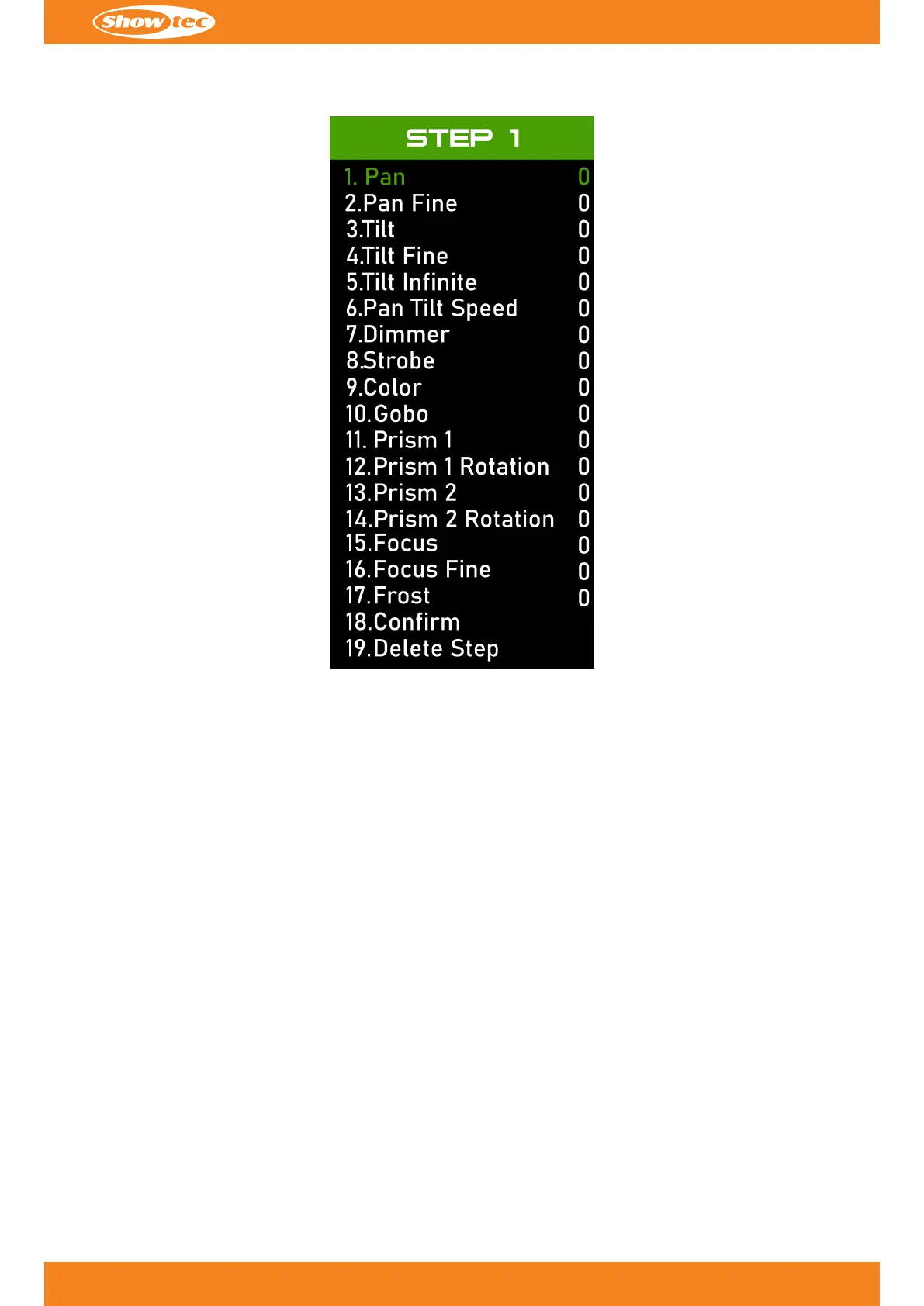 • Tilt Fine: Tilt Fine adjustment (000–255)•