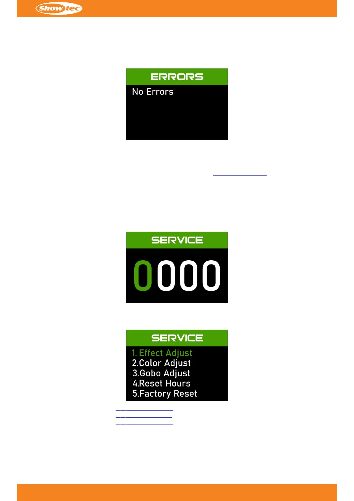 In this submenu you can view whether there are any system errors.