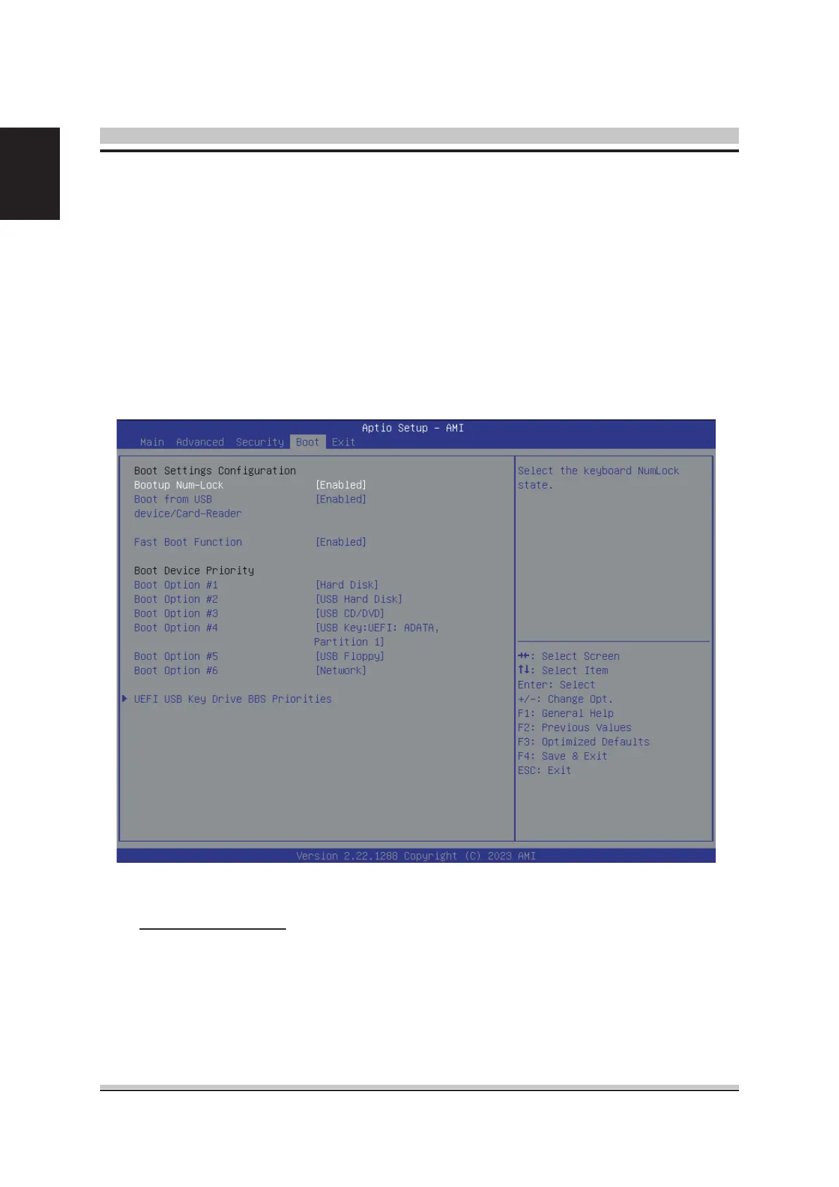 You can display an Boot BIOS Setup option by highlighting it using the <Arrow> keys.