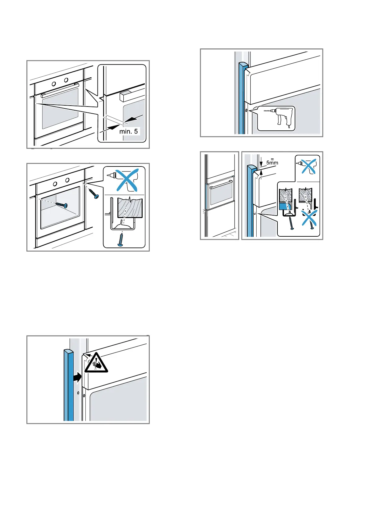 Aan de zijwanden van de ombouwkast mogen geen iso-