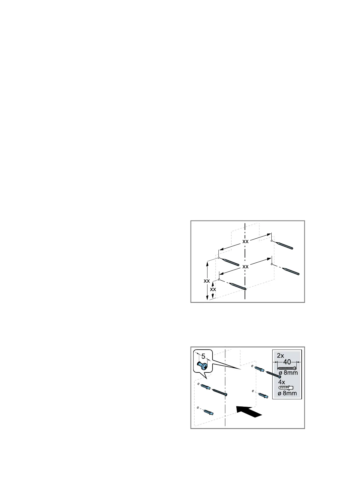 Insert the wall plugs flush with the wall.