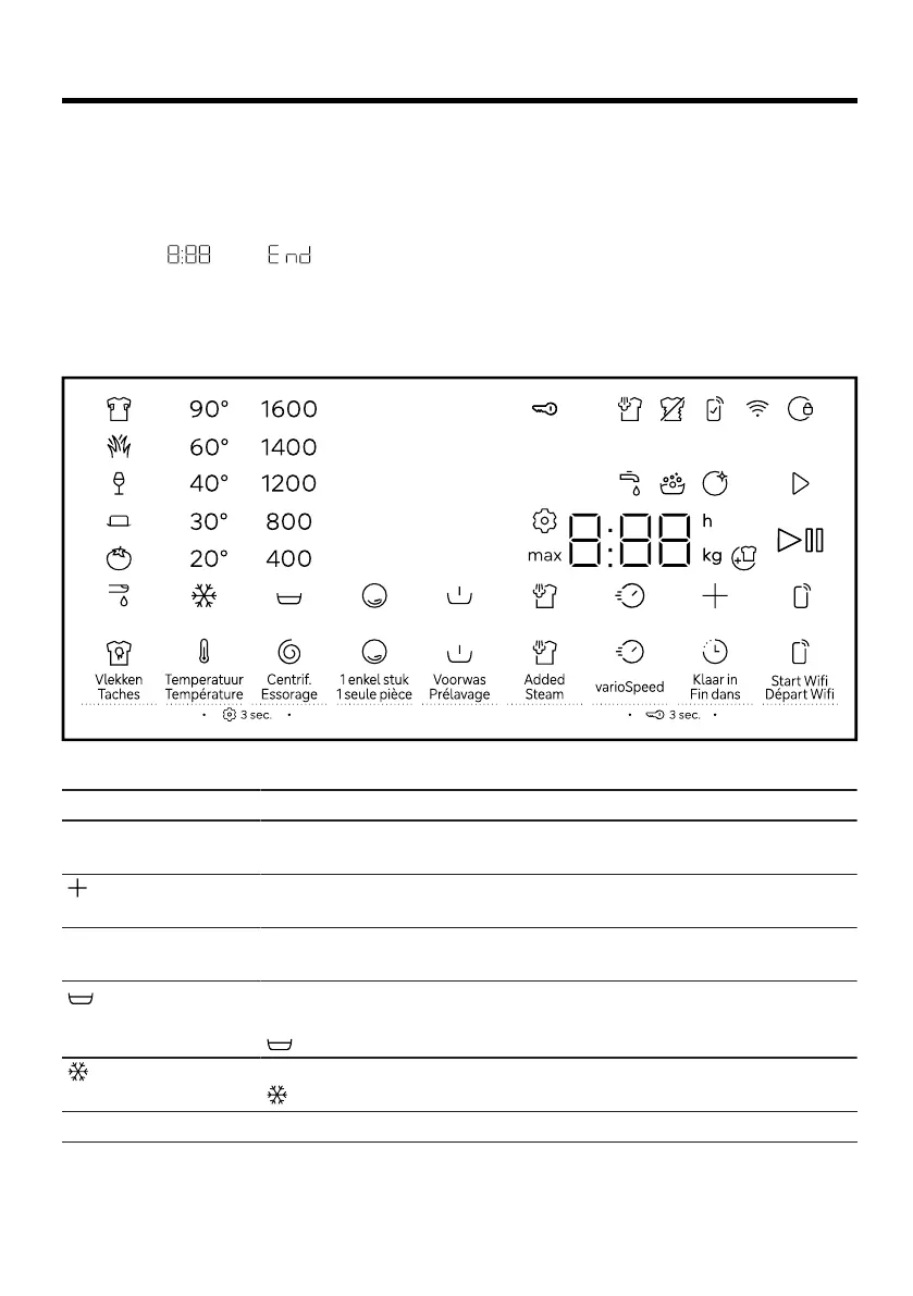 Het display toont afhankelijk van de programmastatus enkele aanwijzingen in