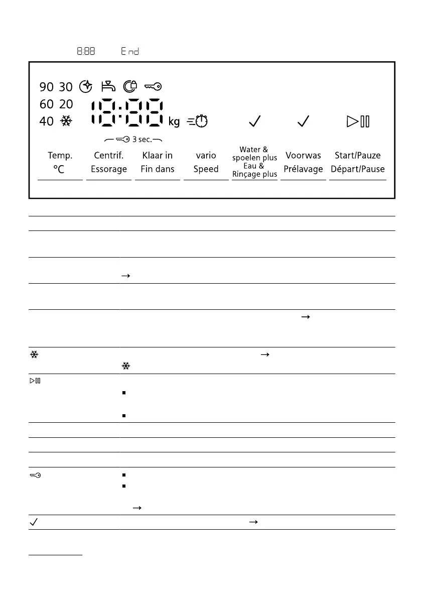 Het display toont afhankelijk van de programmastatus enkele aanwijzingen in