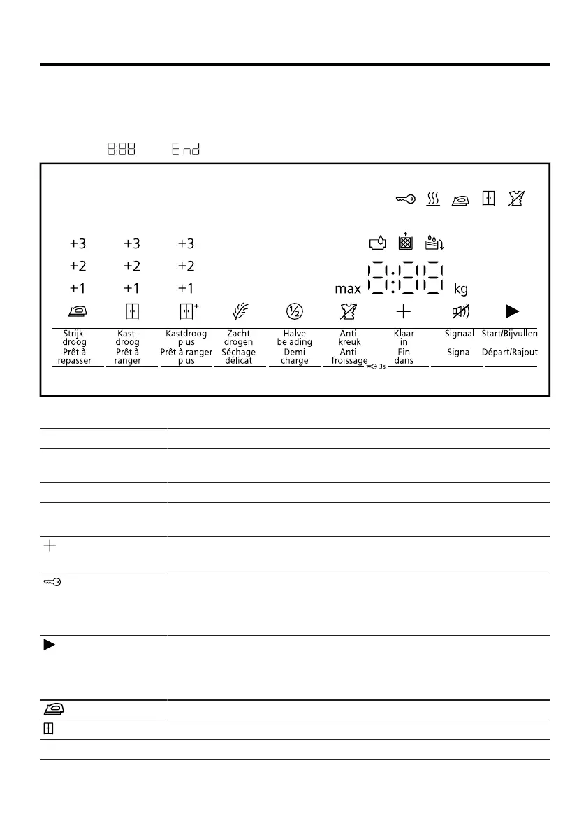 Het display toont afhankelijk van de programmastatus enkele aanwijzingen in