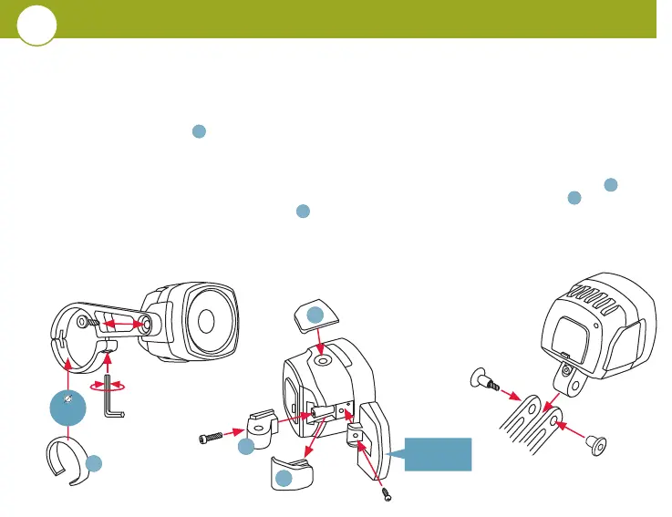 – Per prima cosa, ssare il morsetto del manubrio al corpo lampada utilizzando la vite di ssaggio in dotazione.