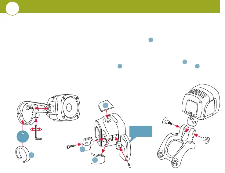 – Nejprve připevněte objímku řídítek k tělu světla pomocí dodaného upevňovacího šroubu.