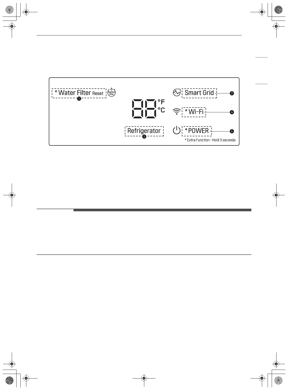 touche Refrigerator pour réveiller l’affichage, puis maintenez les touches Refrigerator et Smart Grid