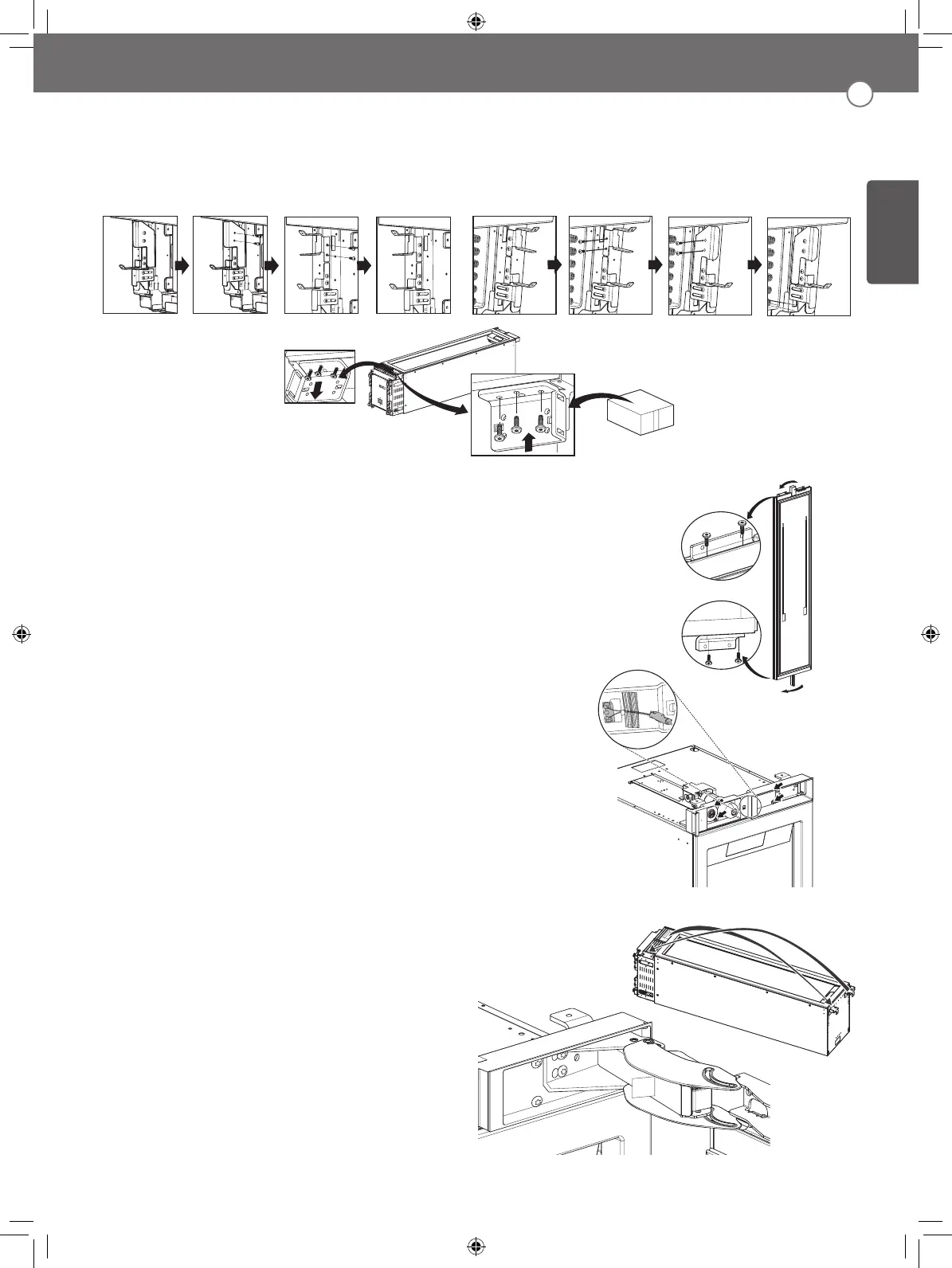 11. Install the hinge removed from the top of the cabinet