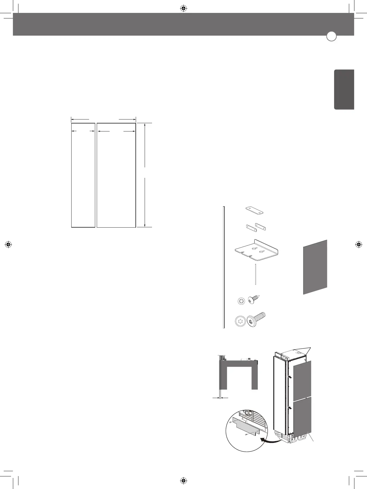 minimum size of the partition is 6" (15.2 cm) to avoid interference between the doors.