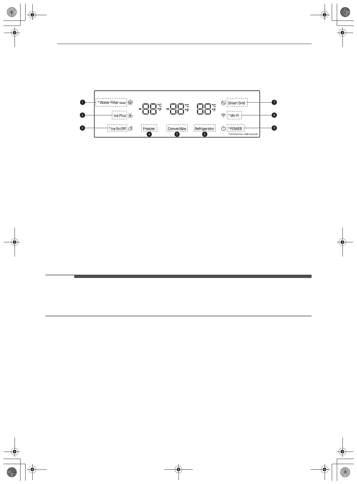 activar la pantalla. Mantenga presionado los botones Freezer y Smart Grid simultáneamente por