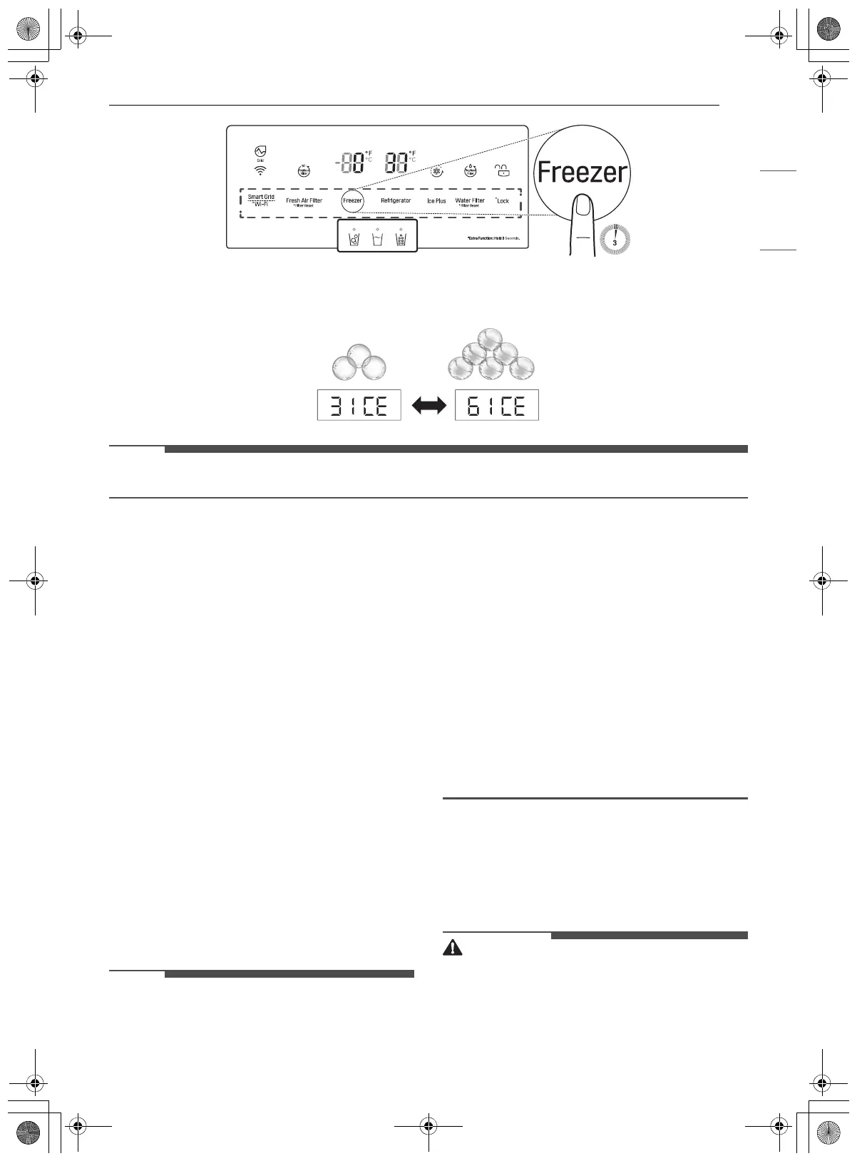 3 Press the Freezer button repeatedly to toggle between the 3 ICE and 6 ICE modes. After 5 seconds of