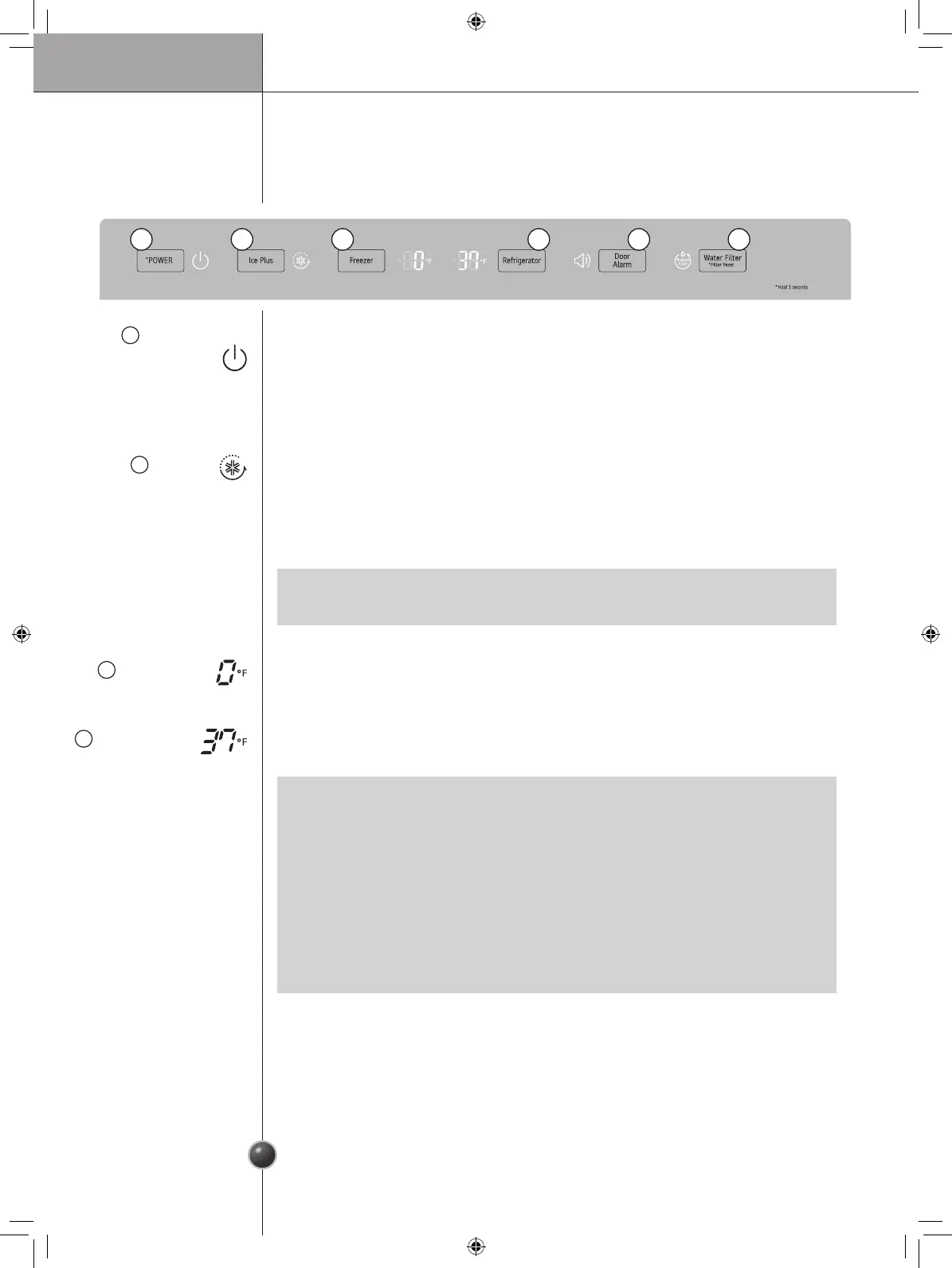 REFRIGERADORA en 37˚F(3˚C) y el CONTROL DE LA HELADERA en 0˚F(-18˚C).