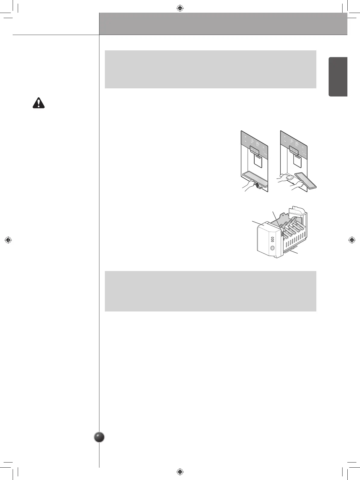• Ice may drop into the freezer compartment. Take the ice storage bin out and