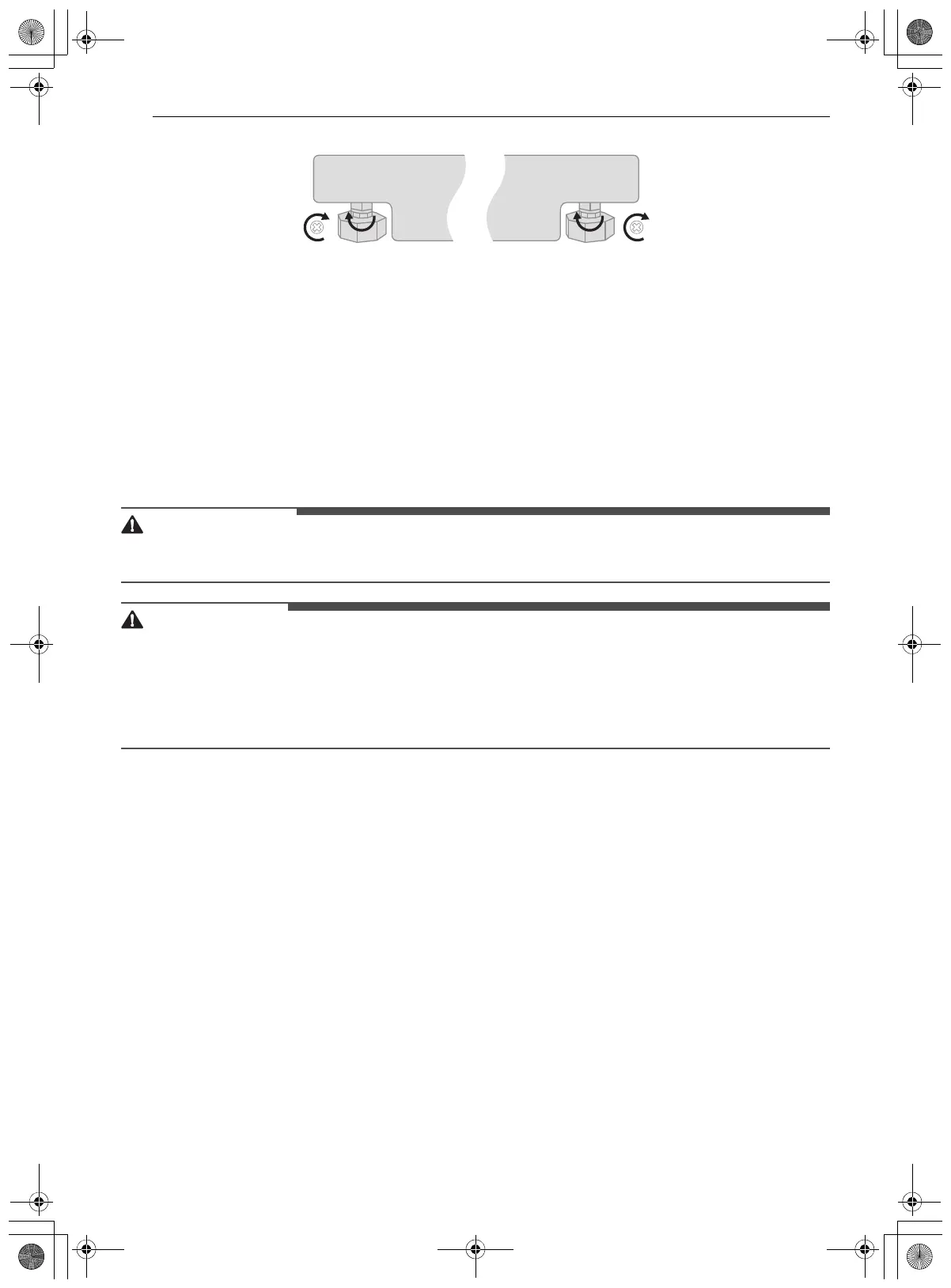 2 Gire los tornillos como se muestra arriba para levantar el aparato. Gire los tornillos en la dirección