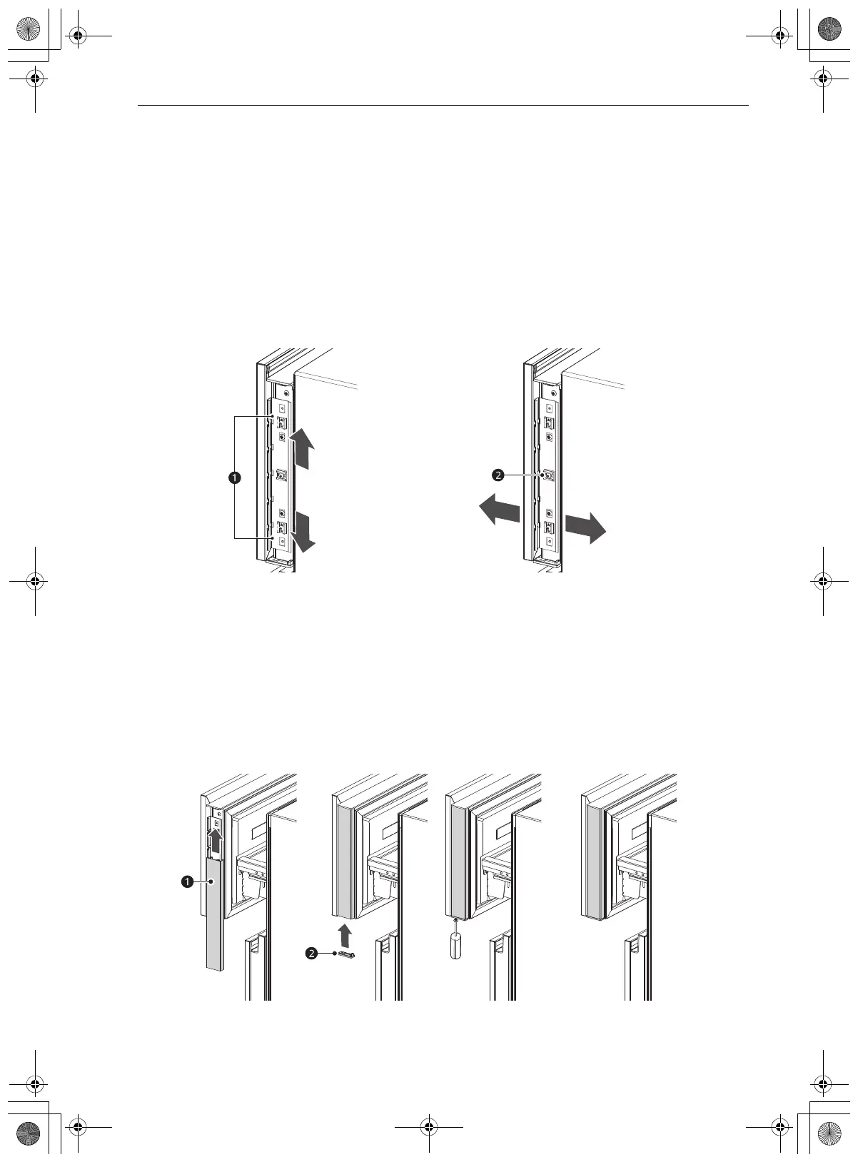1 Para ajustar el panel de la puerta en sentido horizontal, deslice los tornillos de soporte del panel hacia
