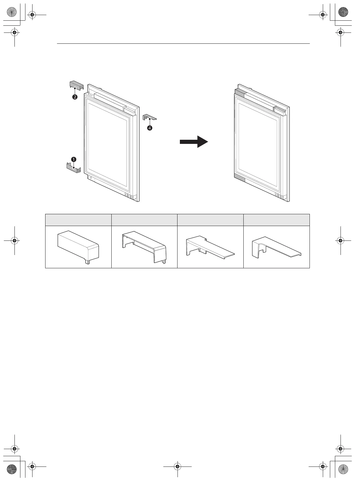 - Insérez les garnitures (finition) b et d sur les côtés gauche et droit du couvercle décoratif supérieur,
