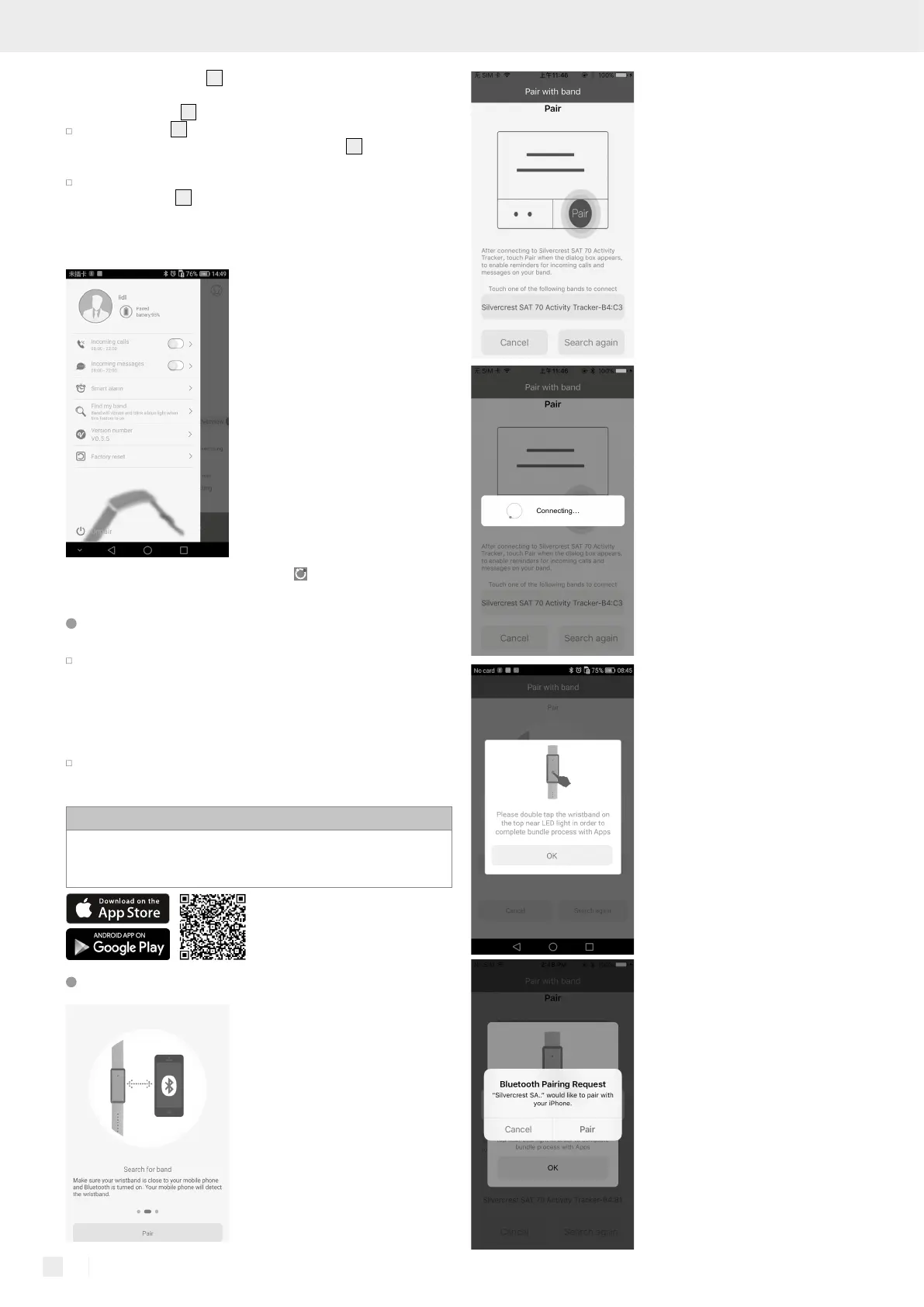 The SilverCrest SAT 70 Activity Tracker App uses the Bluetooth func-