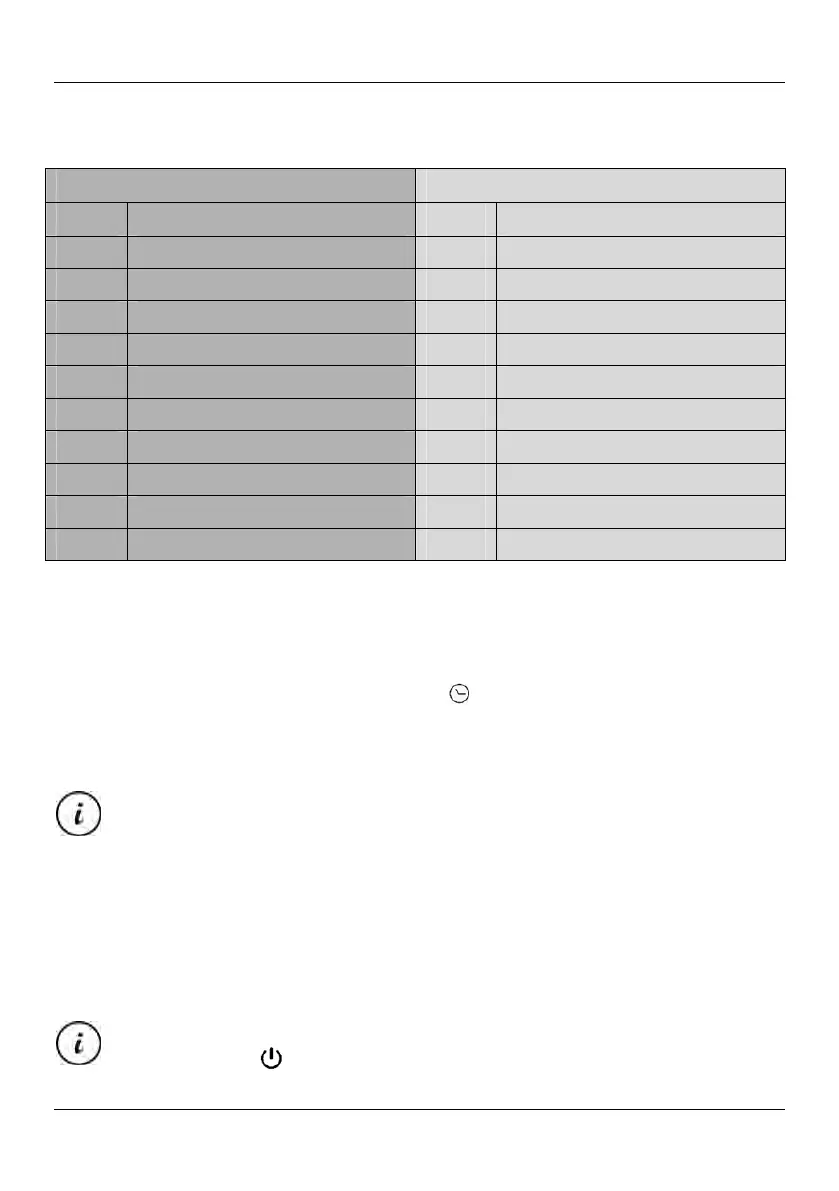 If the timer is activated, the indicator (10) lights up and the display (7) alternates showing the power level