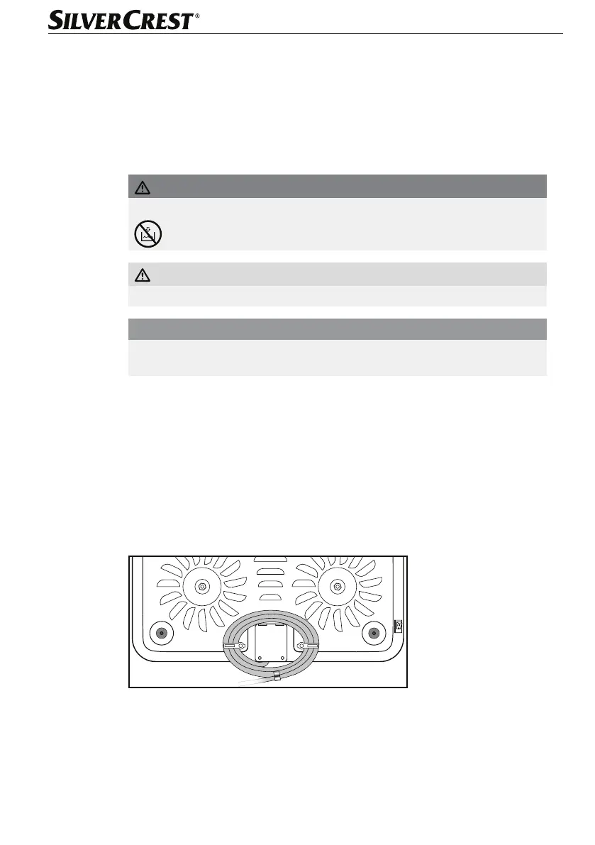 ■ Wind the cable around the cable retainer on the underside of the appliance and
