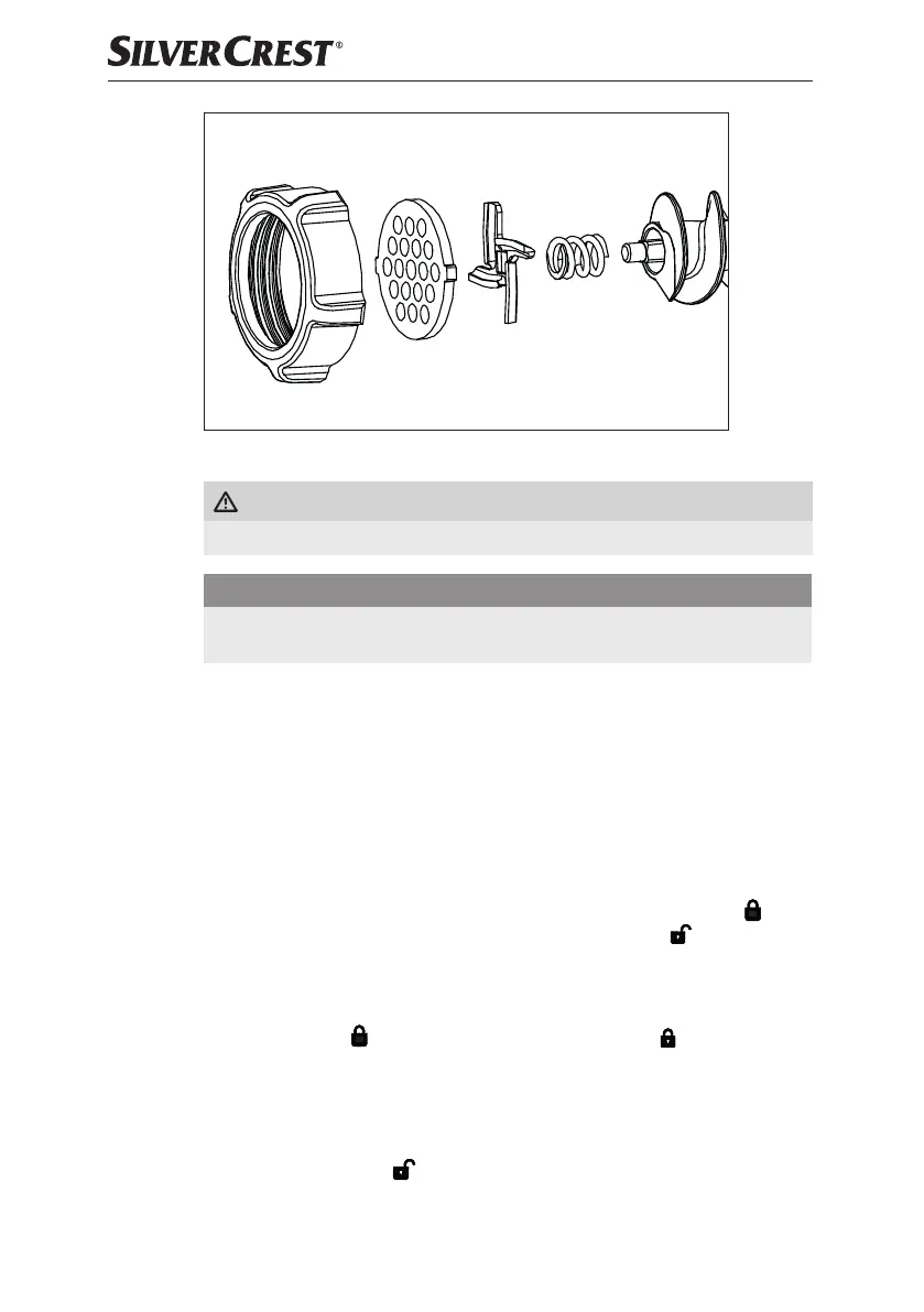 8) The ready-assembled meat grinder ca sing 6 is connected by a bayonet