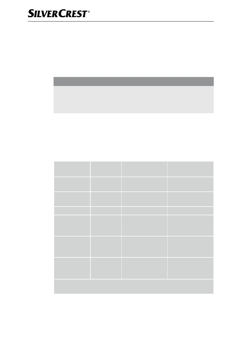 Die angegebenen Zeiten und Mengen in dieser Tabelle sind Richtwerte und