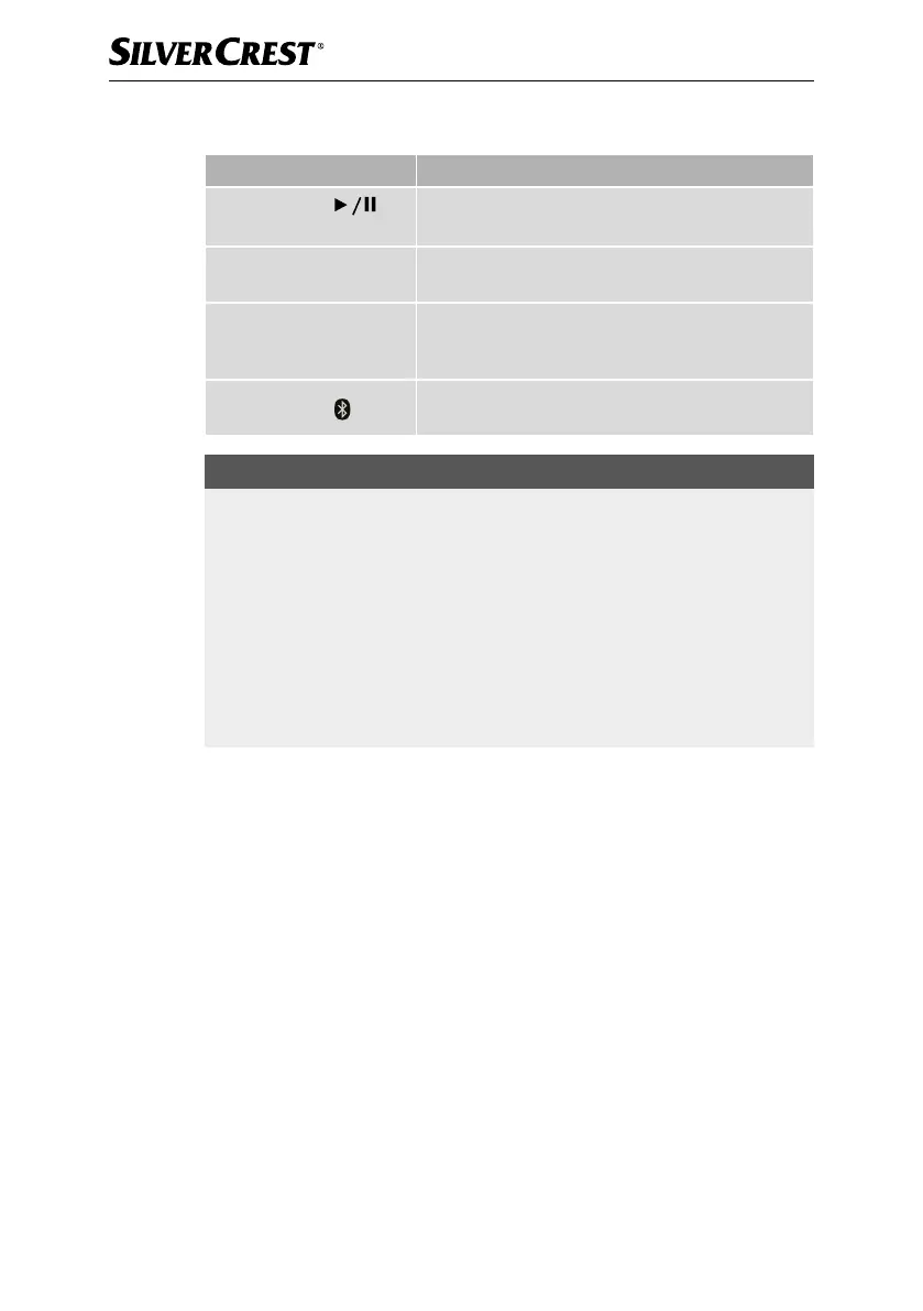 Button functions during playback via Bluetooth