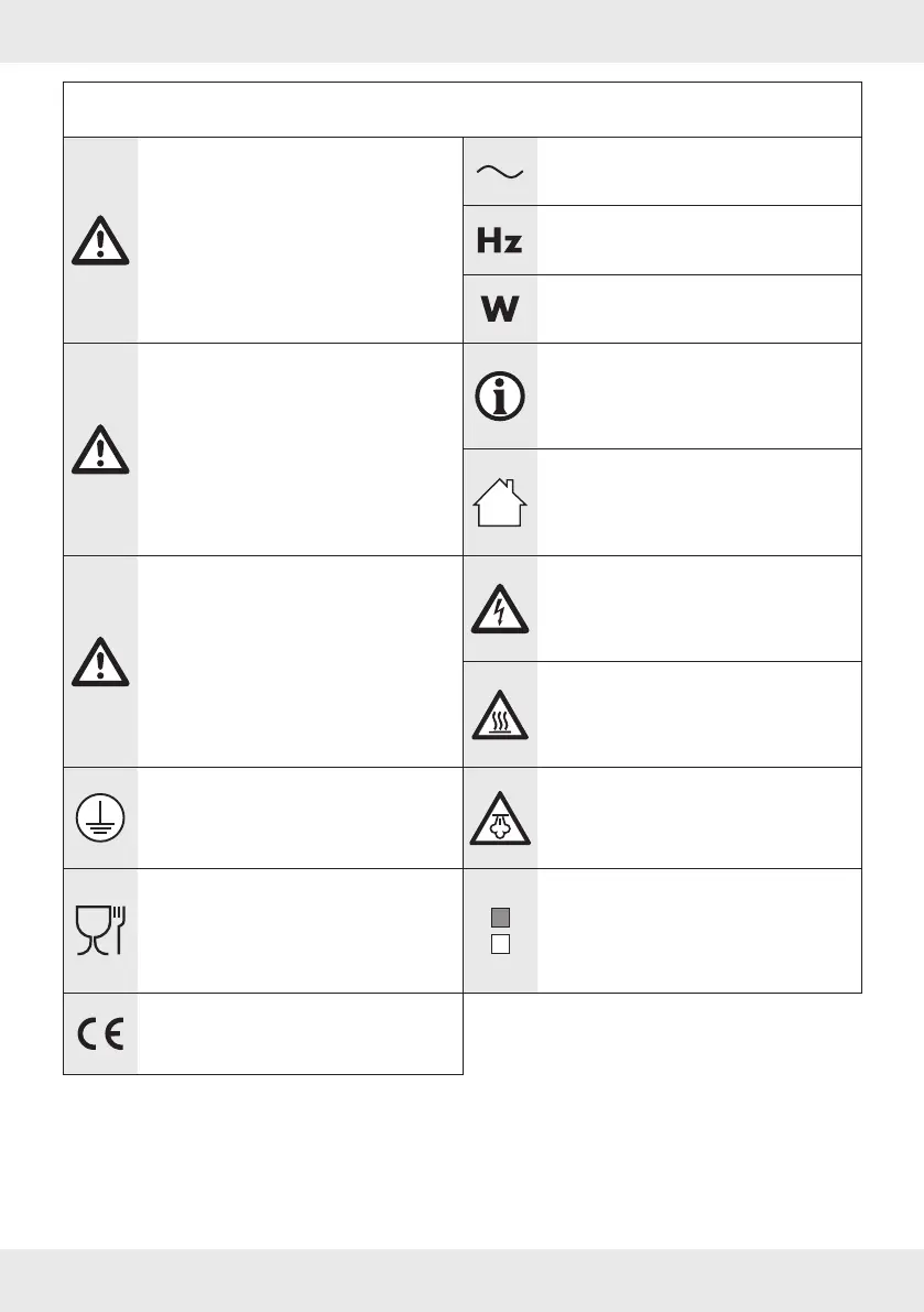 Liste der verwendeten Piktogramme/Symbole