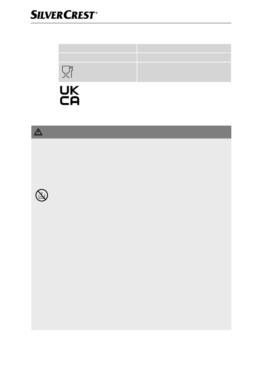 ► Ensure that the appliance can never come into contact with