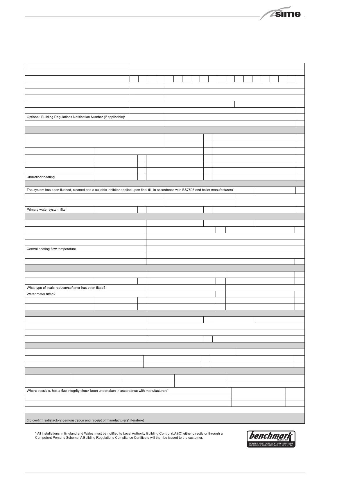 The manufacturers’ literature, including Benchmark Checklist and Service Record, has been explained and left with the customer Yes