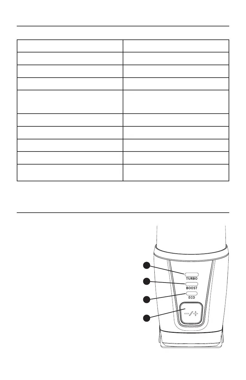 • Use ECO mode for longest battery runtime.