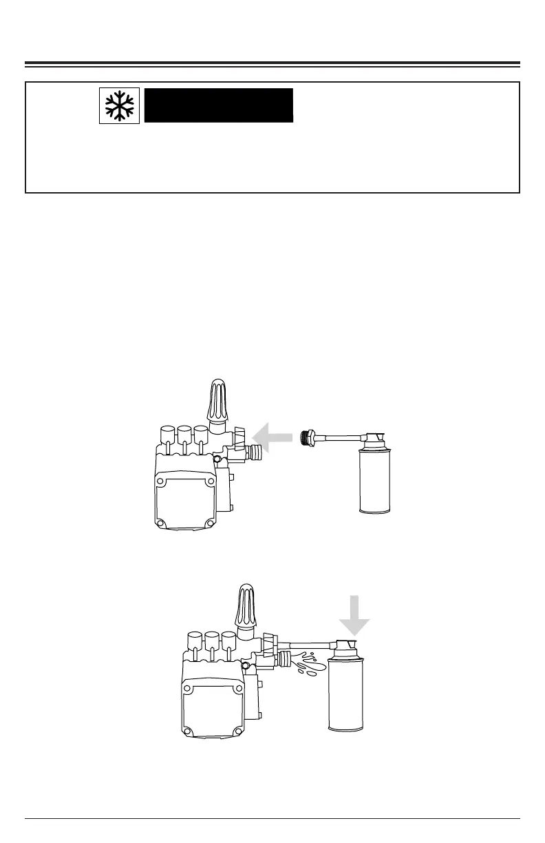 Leaving water inside the pump during freezing weather will cause severe damage to the