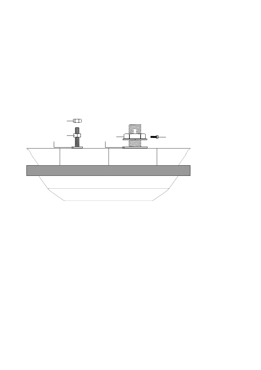 6 Place the second M10 nut (F) onto the anti-rotation stud, and tighten it down onto the rst nut. Hold