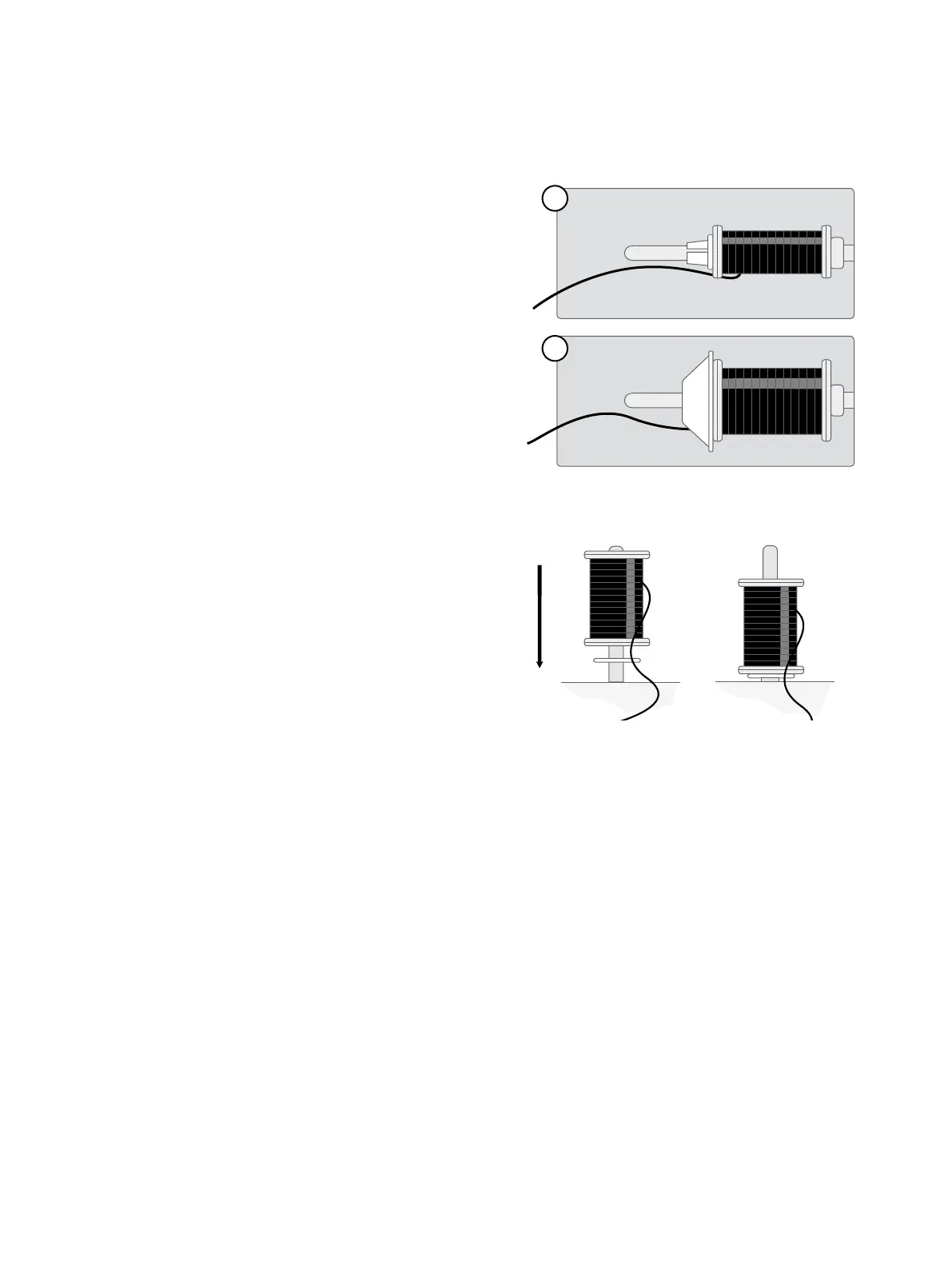 position (the thread spool rotates). Use the horizontal position for normal threads and the vertical position for large spools or specialty