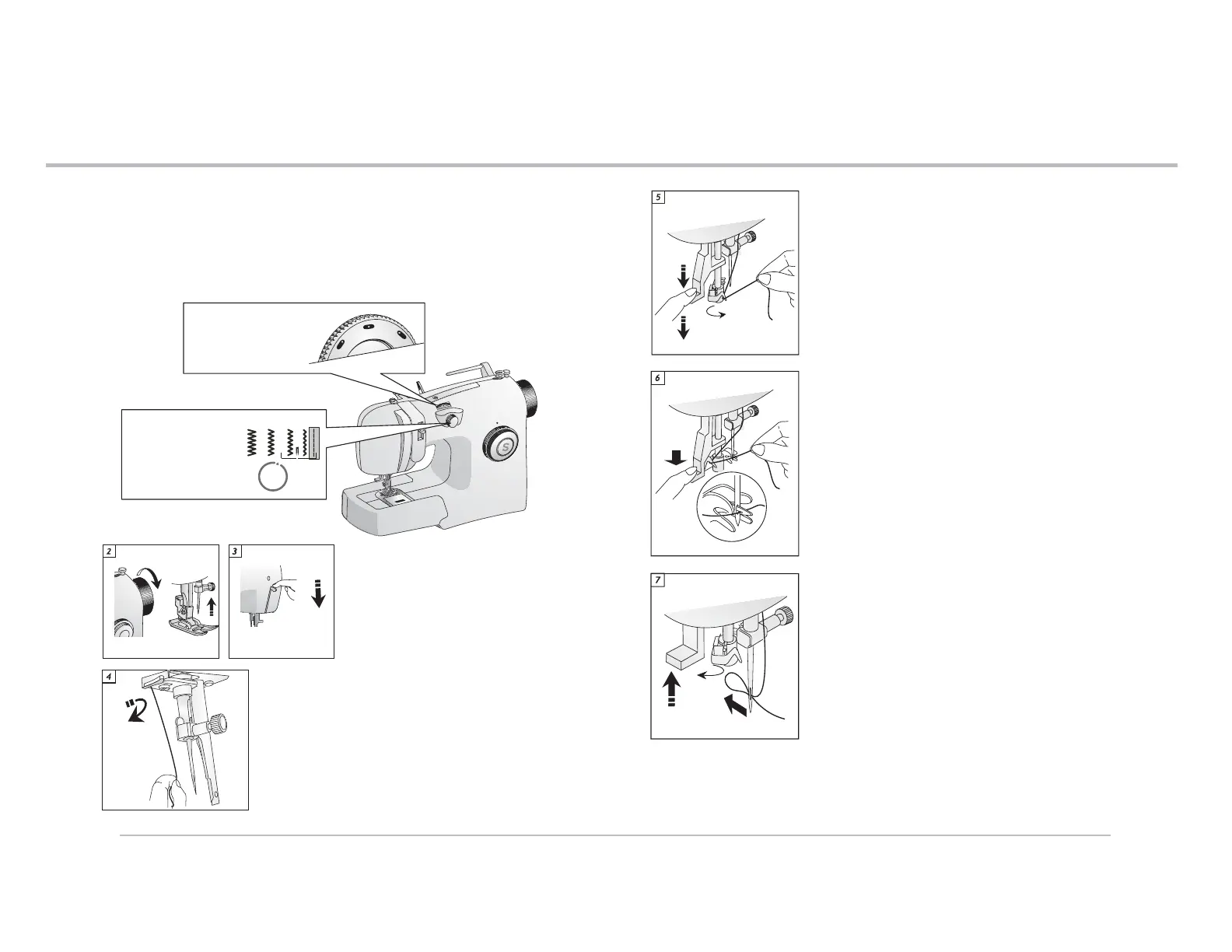 passes through the needle’s eye. Guide the thread into hooked