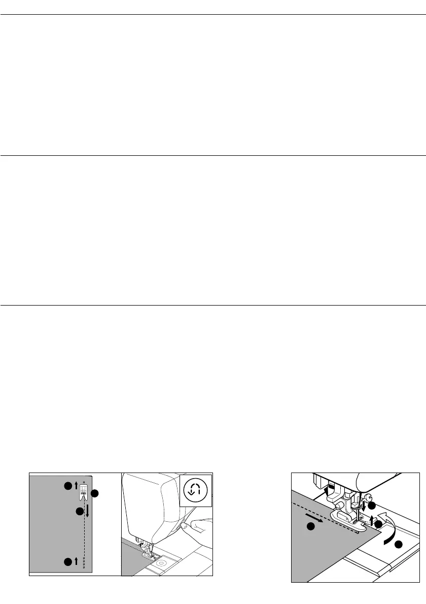 2. Press reverse stitch button and sew 4-5 stitches. Machine