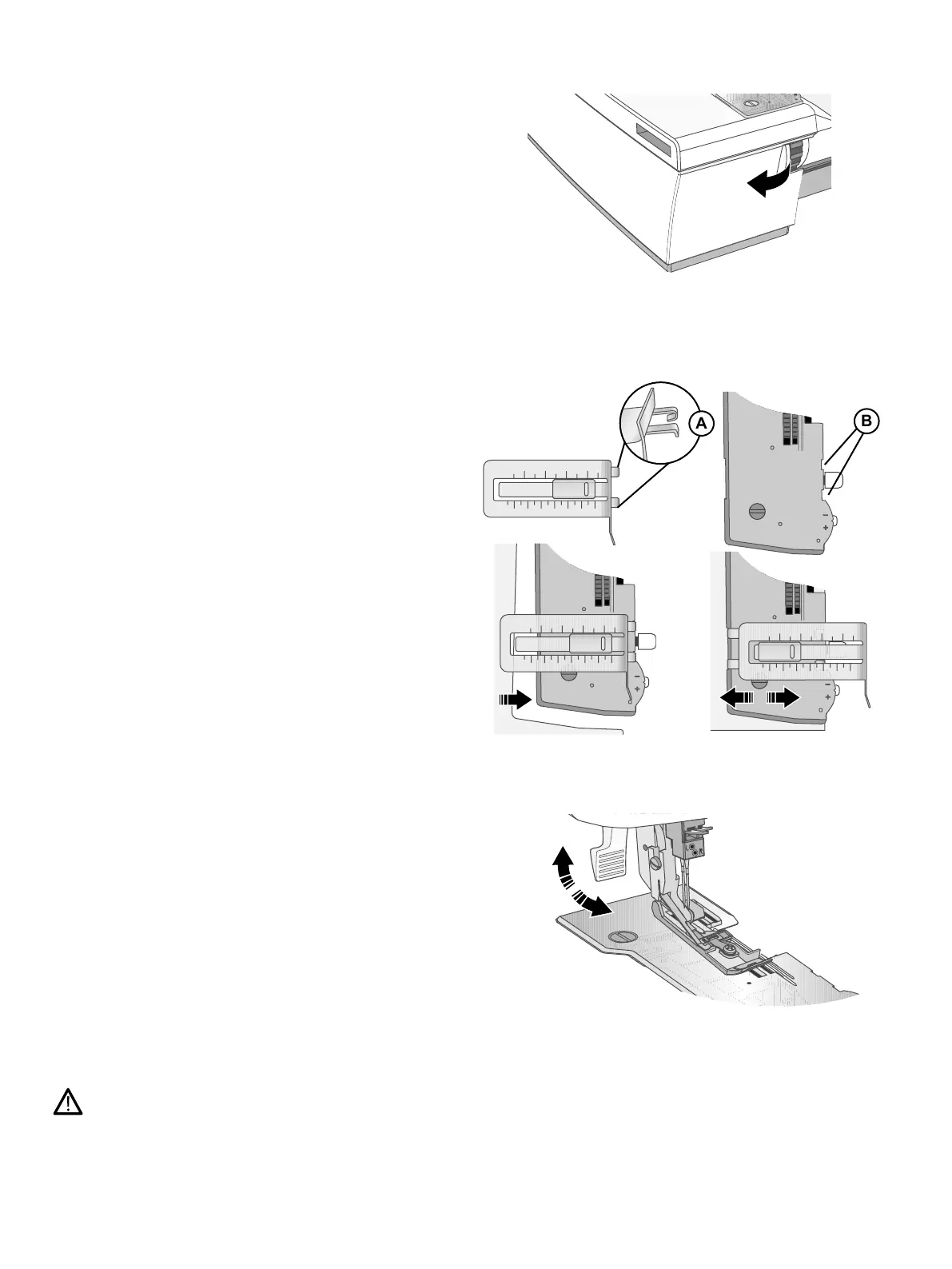 (B) op de steekplaat en duw de zoomgeleider omlaag.