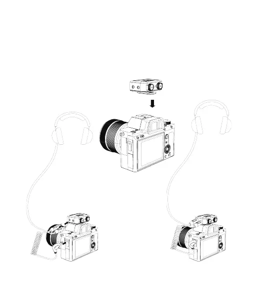 The receiver is secured by a back clip to the camera's hot shoe mount; use 3.5mm