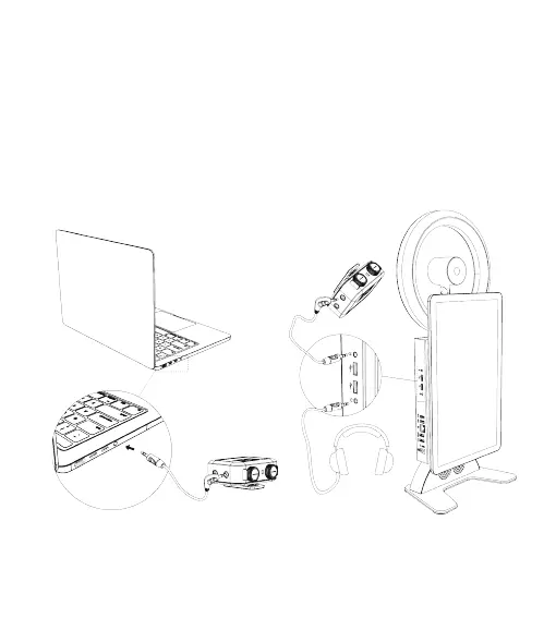 Enganche el transmisor al collar y utilice el audio TRS-TRS de 3,5 mm para