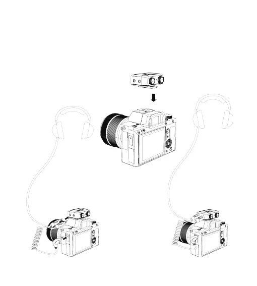 相机,把耳机插入接收器耳机孔实时倾听发射器端音频。(备注:发射器与接收