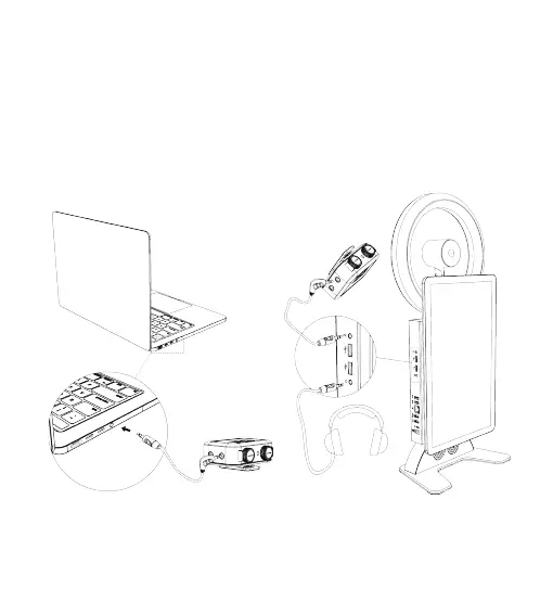 发射器夹到衣领上,使用3.5mm TRS-TRS音频连接接收器和电脑、直播机。