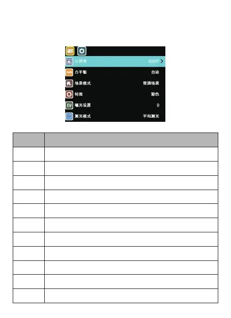 在拍照模式下按【MENU键进入拍照子菜单,如下图: