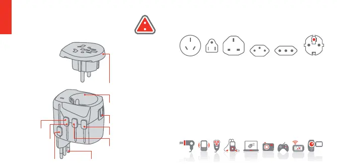 World Adapter Pro/Pro+ passer til de este 2-polede, 3-polede