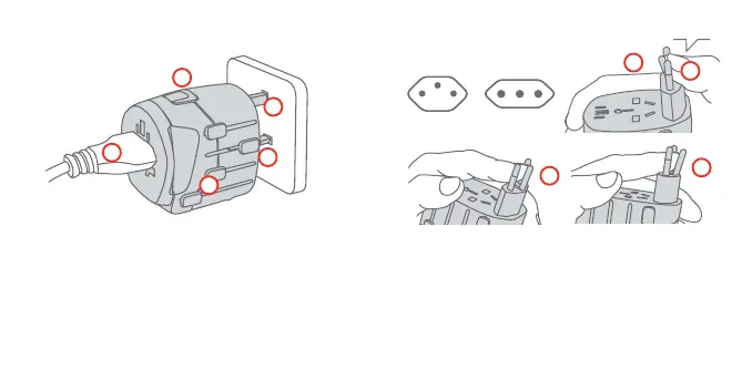 Først når alle stiftene står loddrett er adapteren klar til bruk.