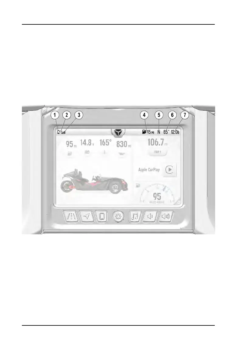 The Ride Command display automatically turns on upon vehicle start up. It will